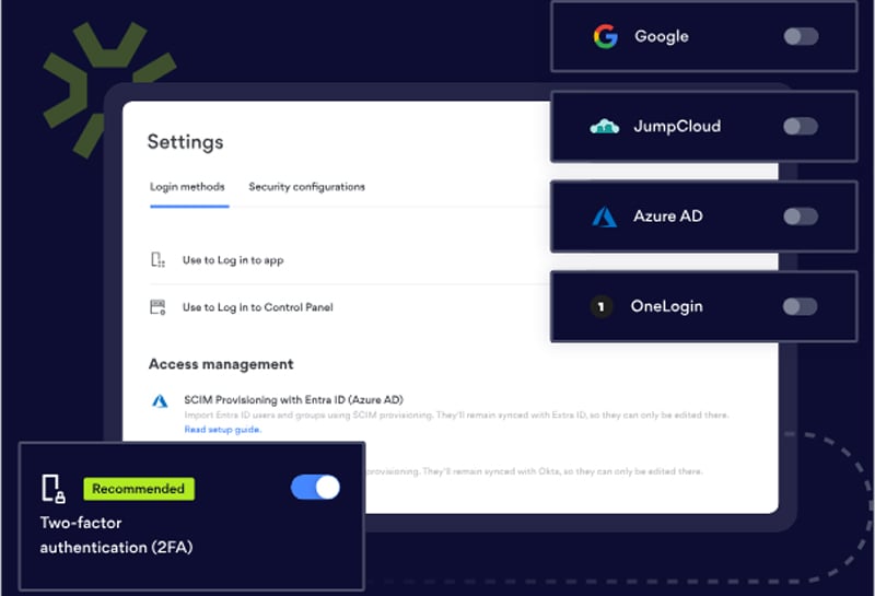 User provisioning: Integrates with major SCIM providers to onboard and offboard users in cloud apps, including maintenance and deletion as their status or role changes.