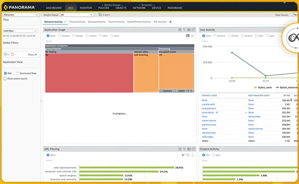 Palo Alto Networks NGFW’s management dashboard via Panorama