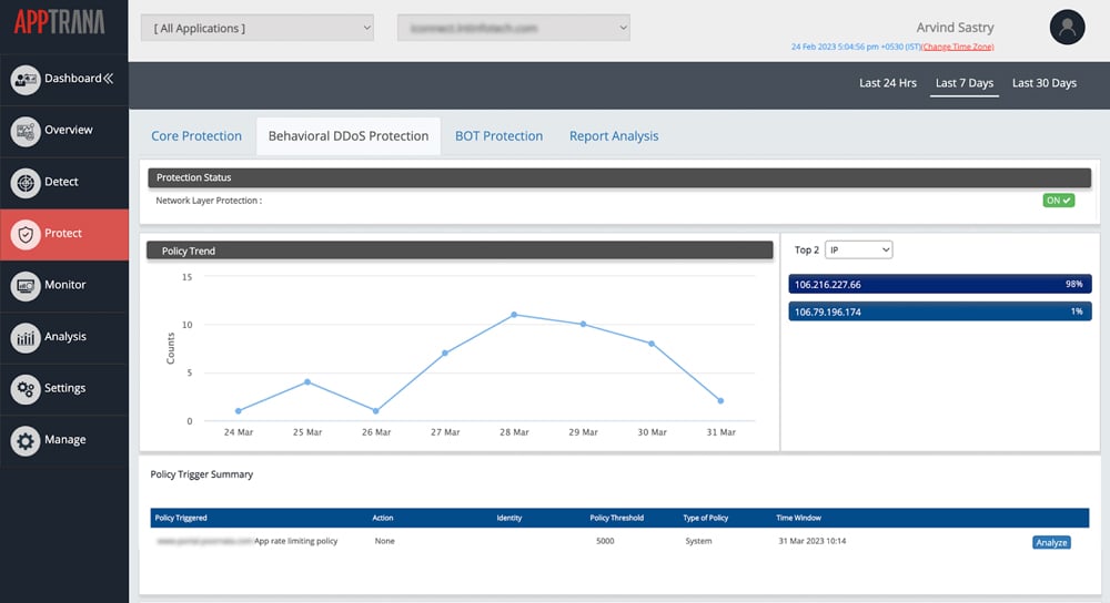 AppTrana is a fully managed web application firewall (WAF) powered by AI, that includes web application scanning for getting visibility of application-layer vulnerabilities; instant and managed risk-based protection with its WAF, Managed DDOS and Bot Mitigation service, and several other features. All backed with a 24×7 Managed Security Expert service to provide custom rules and policy updates with zero false positive guarantee and promise.