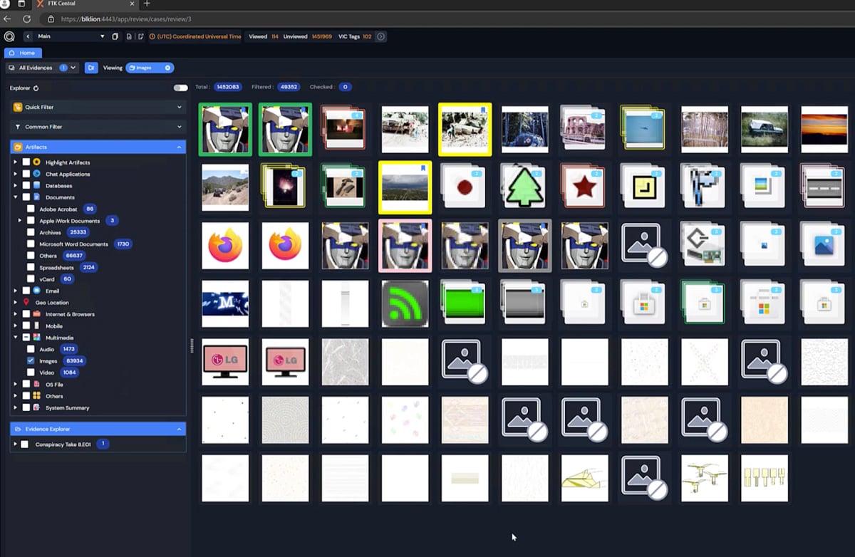 Facial and object recognition: FTK identifies identical image content automatically.