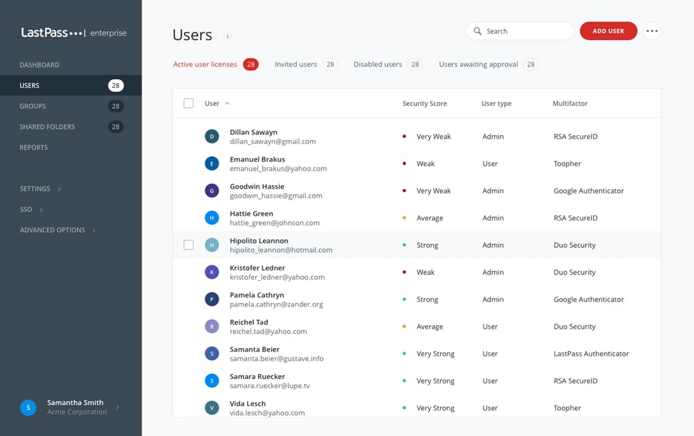 Advanced reporting: With a LastPass Business license, admins can generate reports on user activity, SSO, SAML events, and more.