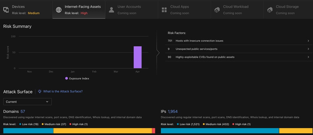 Risk visibility: Provides role-based views of security metrics and trends, allowing for consolidated visibility into critical detections, problematic devices, and users.