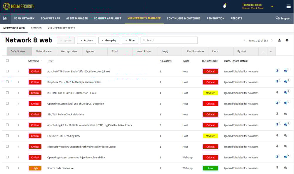 Because Nessus lacks a couple advanced VM features, it’s not the best choice for enterprises. If you’re a large business, consider a product like Holm Security, which offers features like IoT asset identification and some patch management functionality.