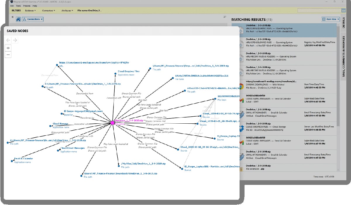 Data visualization: AXIOM Cyber shows connections between various artifacts.