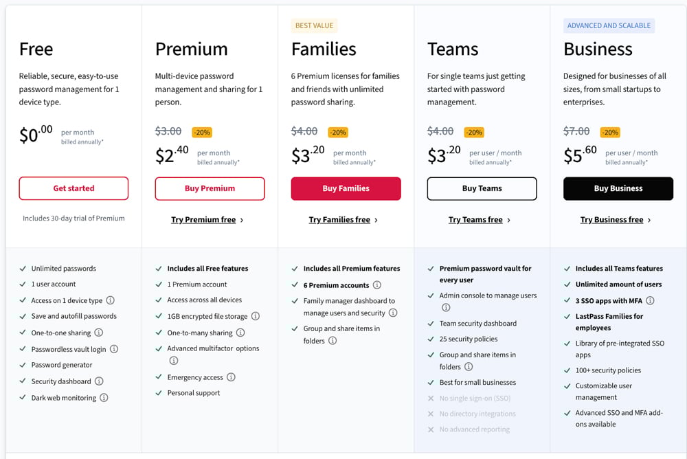 Our LastPass review has more information on core features, security, usability, and support options.